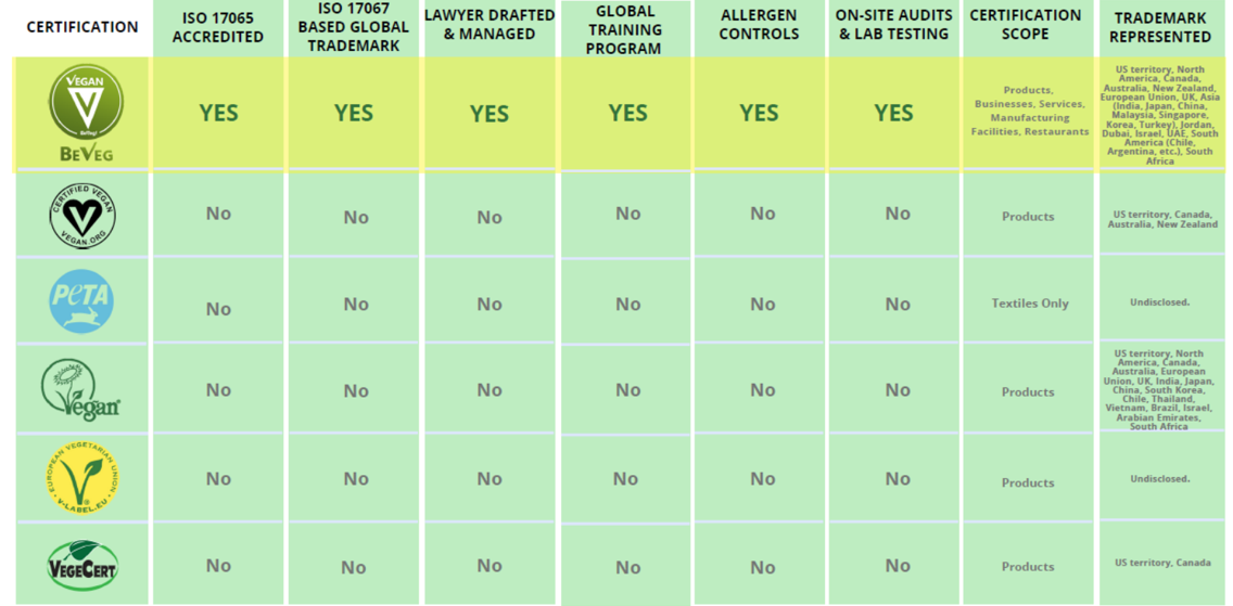 BeVeg는 세계 유일의 ISO 17065 인증 프로그램이자 비건 상표이며, 완전 채식주의자 보증을 위한 벤치마크입니다