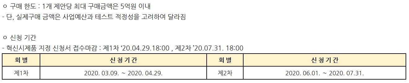 2020년 조달청 혁신시제품 지정ㆍ구매 공고