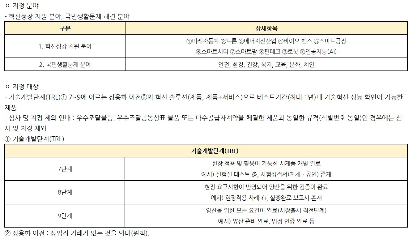 ㅇ 조달청 혁신조달과(042-724-7203, 7664, 7217)